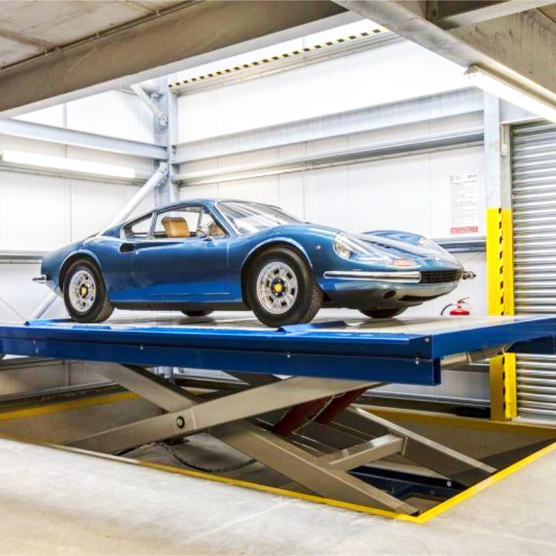 El elevador de coches de tipo tijera es un dispositivo hidráulico especializado para el transporte de mercancías entre los distintos niveles de un edificio. Se utiliza principalmente para operaciones de elevación de vehículos en talleres, almacenes, aparcamientos plurinivel y aparcamientos subterráneos.