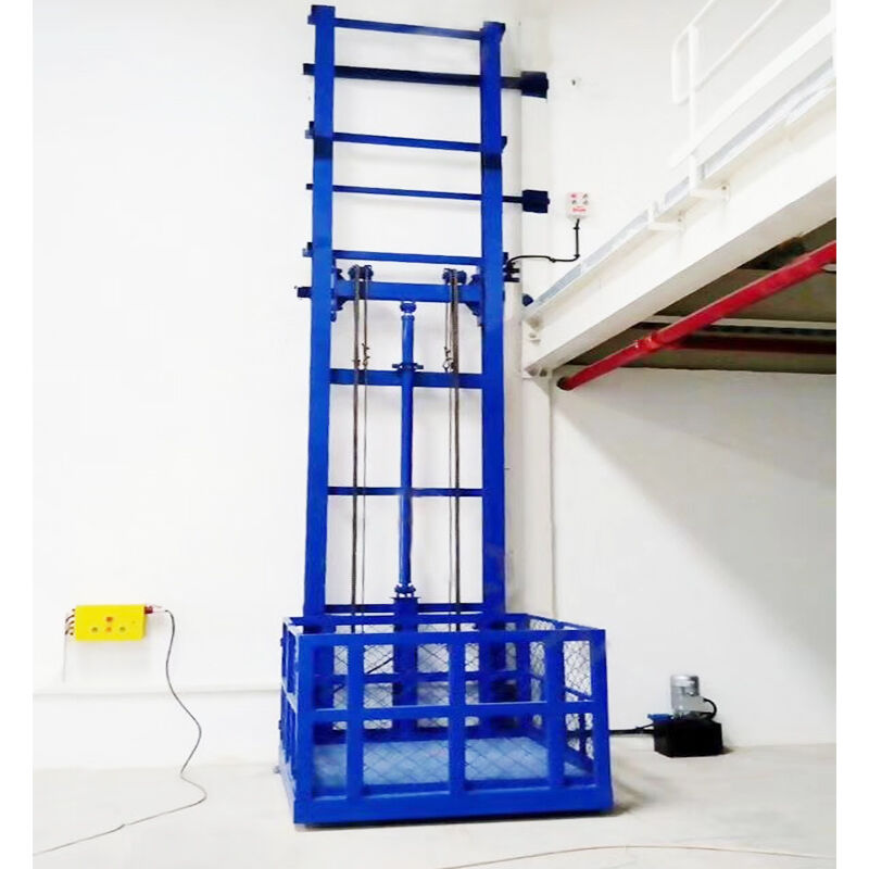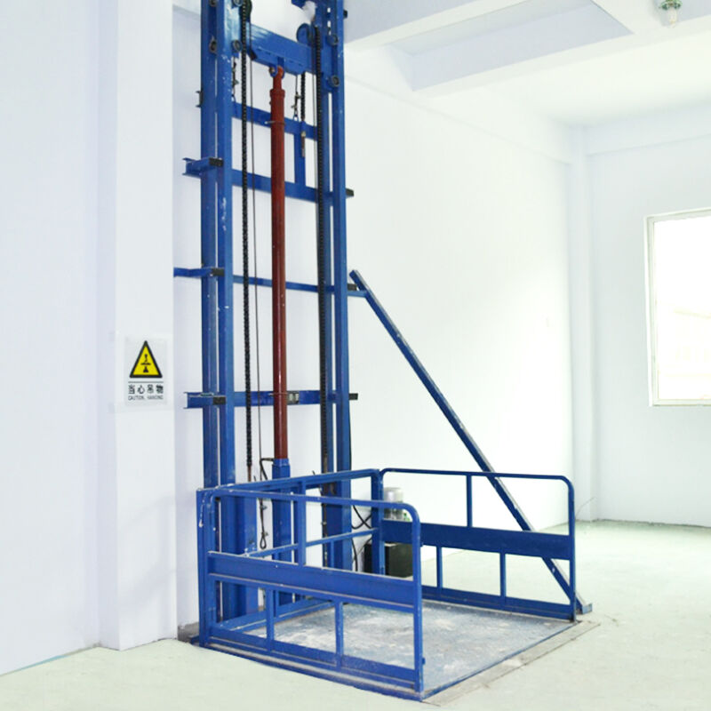 La plataforma elevadora industrial de riel guía simple es un dispositivo hidráulico de elevación con riel guía que cuenta con una estructura de un solo cilindro y un solo brazo, utilizada principalmente para el transporte de carga a gran altura entre pisos. Sus características principales son su estructura compacta y su pequeña huella, lo que la hace especialmente adecuada para entornos con capacidades de carga ligeras y requisitos reducidos de tamaño de plataforma.